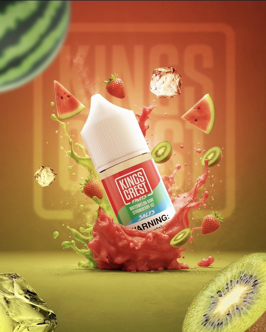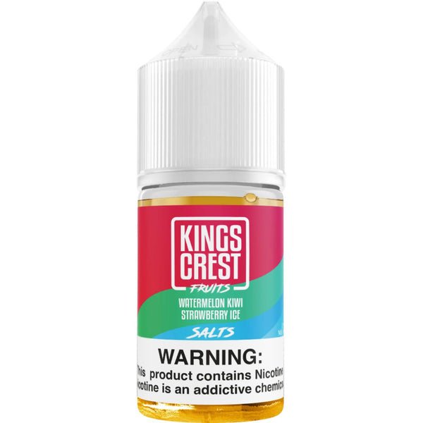 Kings Crest Fruits Salt Watermelon Kiwi Strawberry Ice combina la sandía jugosa, el kiwi ácido y la fresa dulce, todo coronado con un toque helado de mentol que realza la frescura en cada calada.